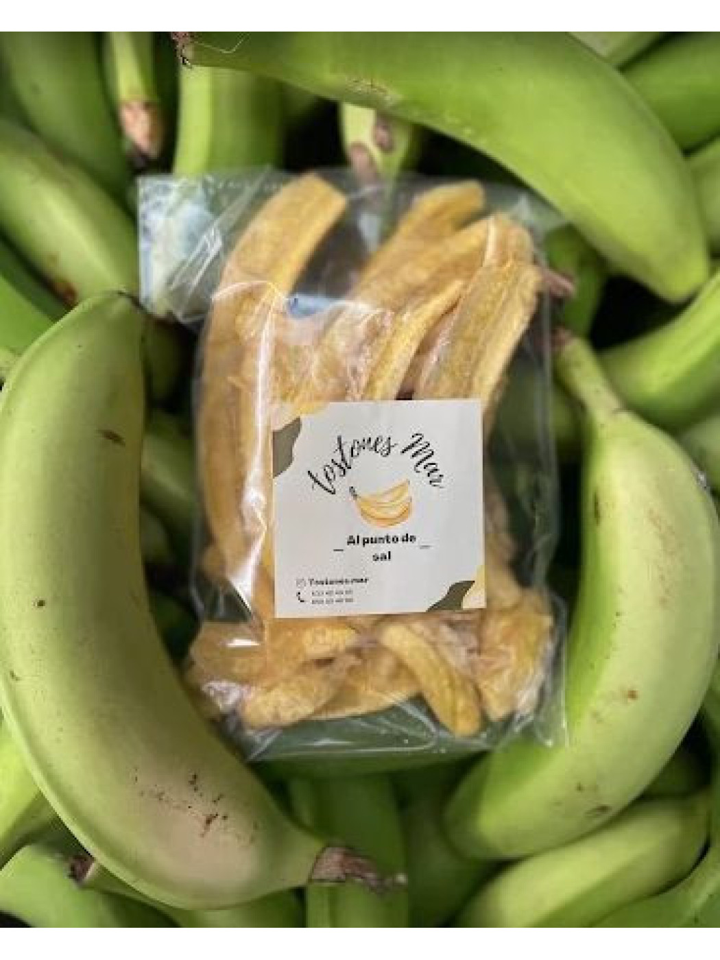 - Ingredientes: Plátano canario, aceite de girasol y sal