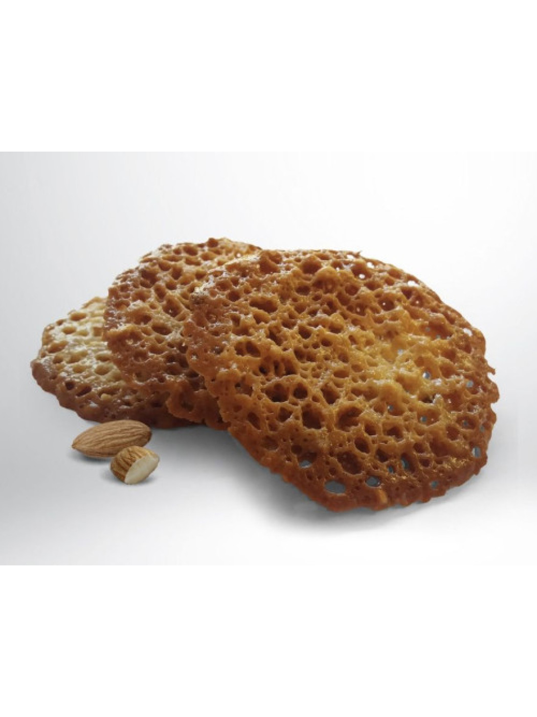 - Tejas de Almendra: Clásicas, crujientes, elaboradas con almendras seleccionadas, azúcar moreno de caña integral, harina de arroz y mantequilla.